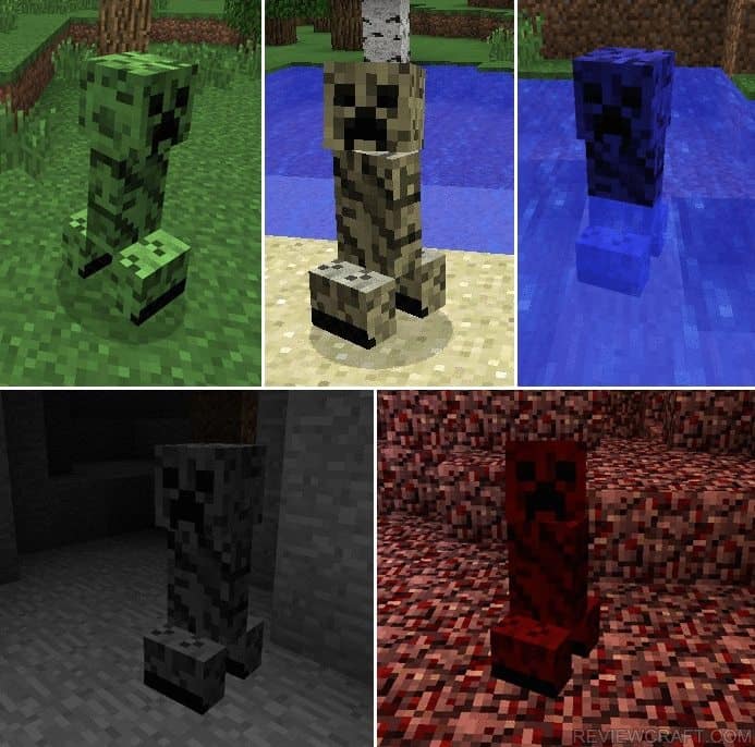 Vel0cityX a eu l’idée de faire jouer la sélection naturelle dans Minecraft : les creepers se sont donc adaptés, se parant d’une nouvelle peau, semblable à celle d’un caméléon. C’est de cette idée toute simple qu’est née Chameleon Creepers, un mod qui permet aux creepers de s’adapter aux biomes dans lequels ils se trouvent pour en prendre la couleur et donc être beaucoup moins voyants qu’auparavant. Si vous aimez les défis, vous risquez de trouver Chameleon Creepers bien sympa !
