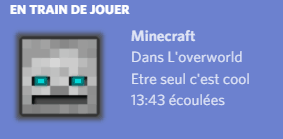Discord s’est imposé en quelques années comme l’outil incontournable de communication pour les joueurs. Discussions textuelles, salons vocaux, partage d’écran… l’application accompagne la plupart des communautés en ligne. Elle intègre également une fonction permettant d’afficher l’activité en cours : chaque utilisateur peut ainsi indiquer quel jeu il lance et parfois même inviter directement ses amis à rejoindre sa partie.