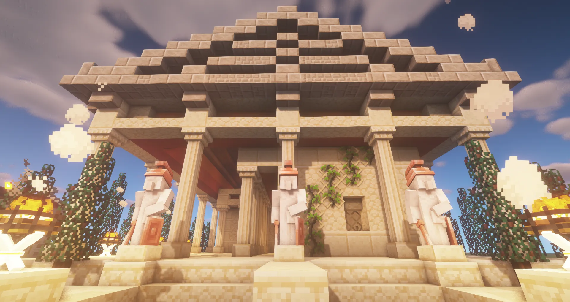Le set perse (présent dans les versions récentes du mod) développe une architecture plus colorée, jouant sur des céramiques, des pierre sculptées, des arches élancées et des motifs géométriques. Ses blocs se prêtent aussi bien à la construction de palais qu’à celle de jardins inspirés du Moyen-Orient, avec des fontaines, des bassins décoratifs et des boiseries ornées.
