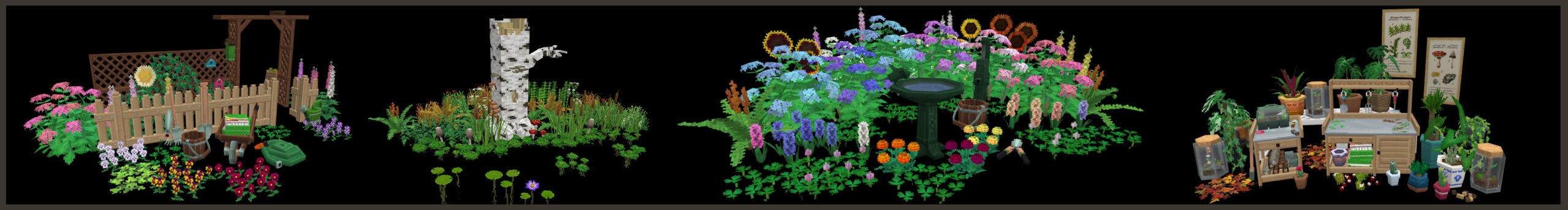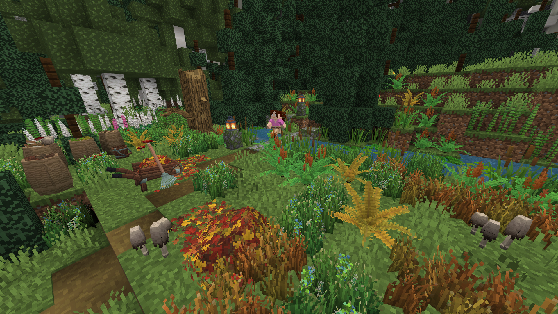 Le mod ne se limite pas à quelques modèles supplémentaires. Il propose différentes tailles, formes et styles pour éviter l’effet répétitif. Cela permet de créer des jardins plus denses, des sentiers végétalisés ou encore des coins sauvages plus crédibles.