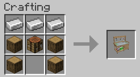 La Nature Bench est l’établi principal du mod. C’est ici que vous fabriquez la majorité des plantes décoratives et des éléments extérieurs. Elle regroupe les recettes spécifiques afin de ne pas surcharger la table de craft classique.