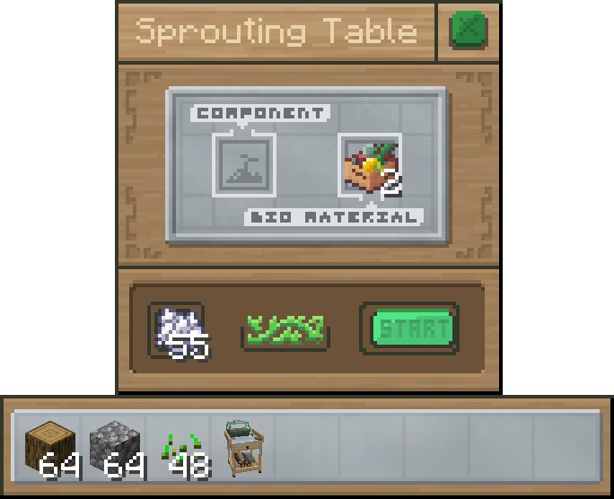 La Sprouting Table sert à produire le Bio Material, une ressource utilisée dans de nombreuses recettes du mod.