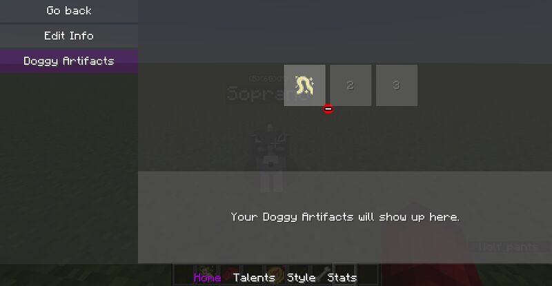 Water Holder permet à votre chien de transporter de l’eau, et Doggy Tools lui donne la capacité d’utiliser des outils. Shock Absorber réduit les dégâts subis, et Mob Retriever permet de récupérer des mobs. Flying Furball ajoute des capacités de vol, Chemi Canine confère des effets chimiques spéciaux, Fire Drill permet de gérer le feu, Sniffer Dog détecte les objets précieux, Gate Woof contrôle les portes, et Ookamikaze ajoute des capacités spéciales explosives.