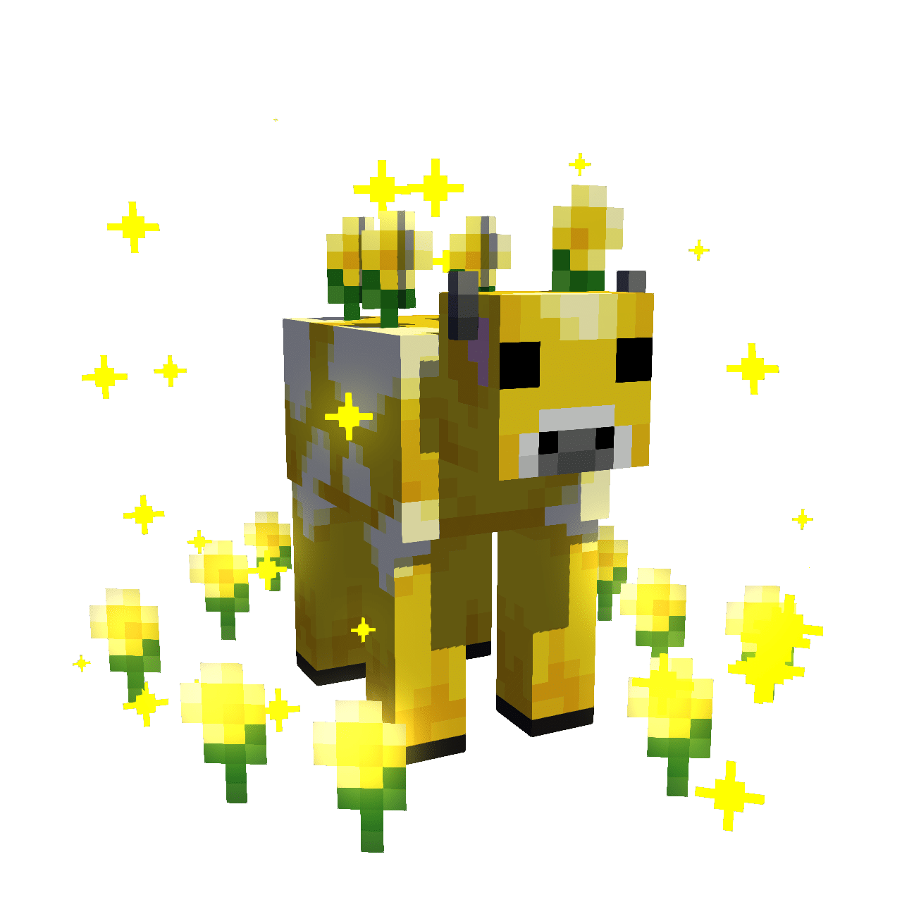 - Elle peut être cisaillée comme les Mooshrooms, en laissant tomber des boutons d’or qui peuvent servir à soigner le joueur.