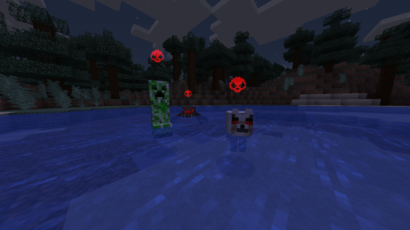 Ainsi, vous pourrez concentrer vos attaques sur ceux-ci, et vous préparer au mieux à l’affrontement. Cela peut permettre, par exemple, de tuer des cochons-zombie hostiles, en évitant de provoquer les autres, ou encore d’éviter d’attaquer une araignée passive. Par ailleurs, vous pourrez remarquer immédiatement la présence de ces créatures, et répliquer à leurs attaques, ce qui peut être très utile, en particulier dans les cavernes, ou en pleine nuit. Enfin, en multijoueurs, vous pourrez voir rapidement si vous êtes la cible des monstres, ou s’ils préfèrent s’en prendre à un autre joueur.