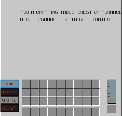 Les 4 cases qui sont visibles dans la partie upgrade, sont les emplacements dans lesquels vous allez pouvoir placer vos objets habituels. Par exemple, vous pouvez y mettre 4 fours si vous voulez orienter votre machine en gros four ou sinon, le plus pratique et d’y mettre une table de craft, un four et deux coffres comme ceci :