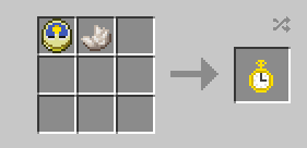 La montre de poche est une horloge améliorée, fabriquée avec une horloge et du nether quartz. Elle n’est pas animée comme l’horloge de Minecraft, mais le fait de l’avoir dans votre inventaire permet d’avoir la barre dans l’HUD tout le temps. Une heure exacte sera également affichée à côté de la barre d’horloge.