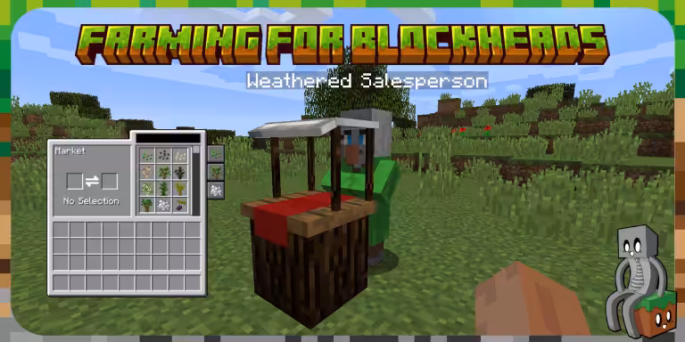 Si vous préférez l’agriculture à l’élevage pour subvenir à vos besoins alimentaires, sans doute avez-vous été confronté à la difficulté de commencer des cultures. En début de partie, créer des champs de blé se résume en effet à détruire une masse impressionnantes de hautes herbes pour obtenir des graines. Pour des cultures plus précises, les graines se font rares et deviennent excessivement difficiles à trouver compte tenu de ce qu’elles permettent de cultiver. Citons notamment la citrouille et la pastèque dans cette catégorie. Conscient de ce problème, BlayTheNinth a conçu Farming for Blockheads, un mod extrêmement simple qui ajoute un nouveau villageois marchand.