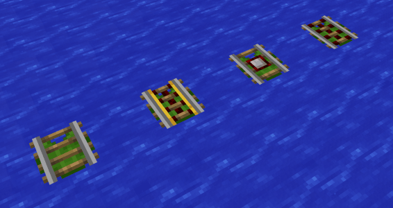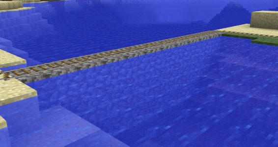 EwyBoy a eu l’idée brillante de créer un mod qui risque fort d’être apprécié par une grosse partie des joueurs qui utilisent régulièrement les rails dans Minecraft. Le schéma ci-dessus appartient donc au passé. Avec les nouveaux rails introduits par Floating Rails, vous avez la possibilité d’en placer directement sur l’eau. Le créateur a fait en sorte que les rails soient supportés par un nénuphar pour que les rails restent à la surface et que ce soit un minimum cohérent.