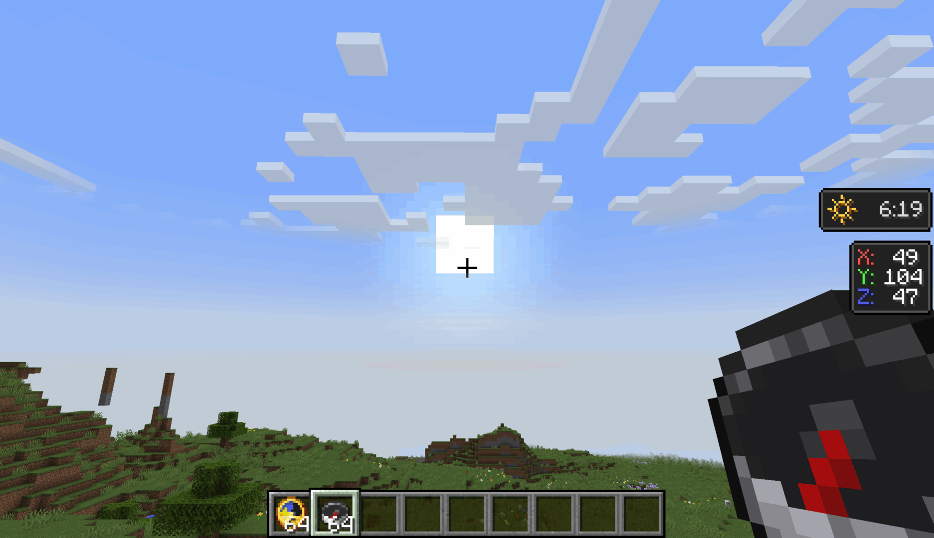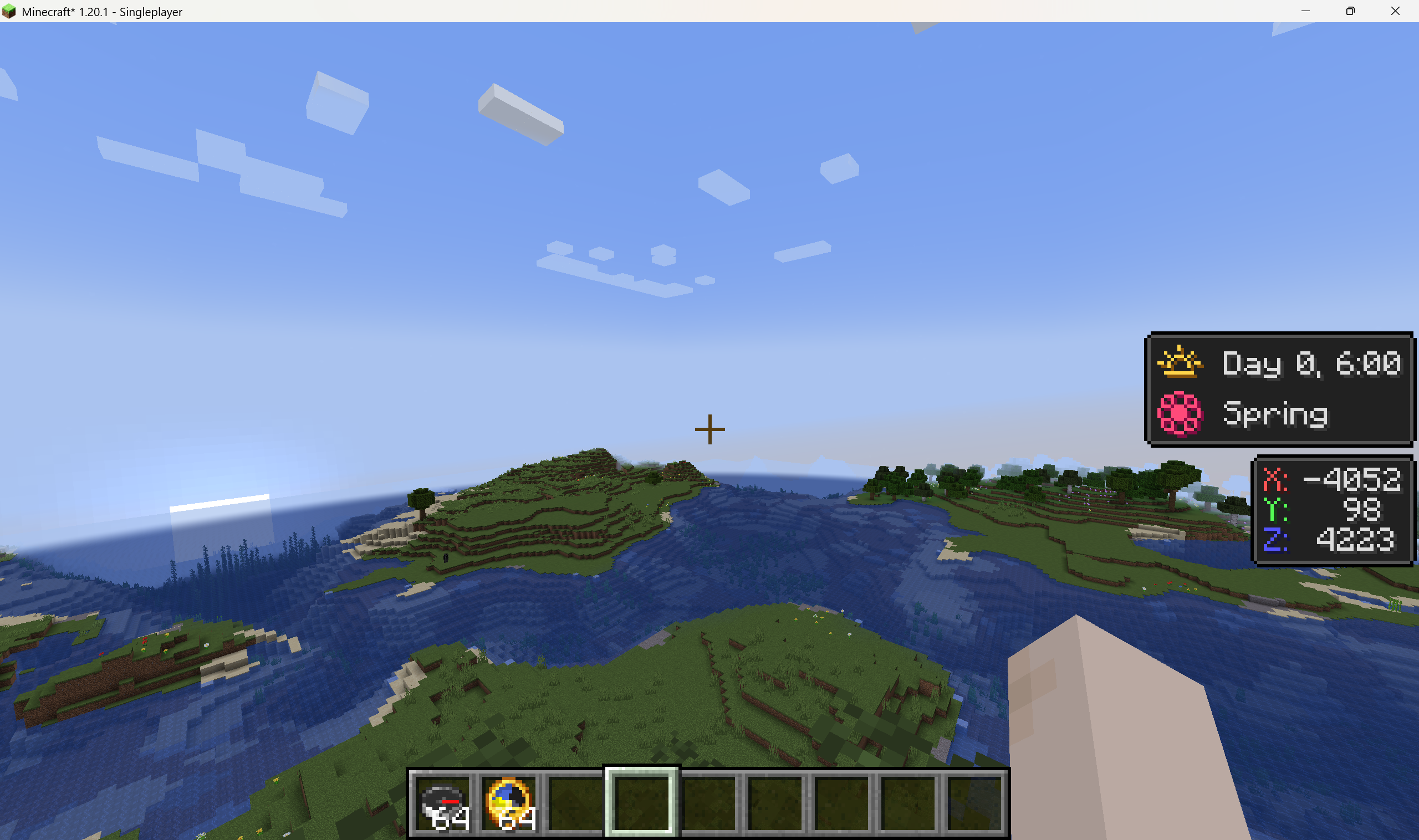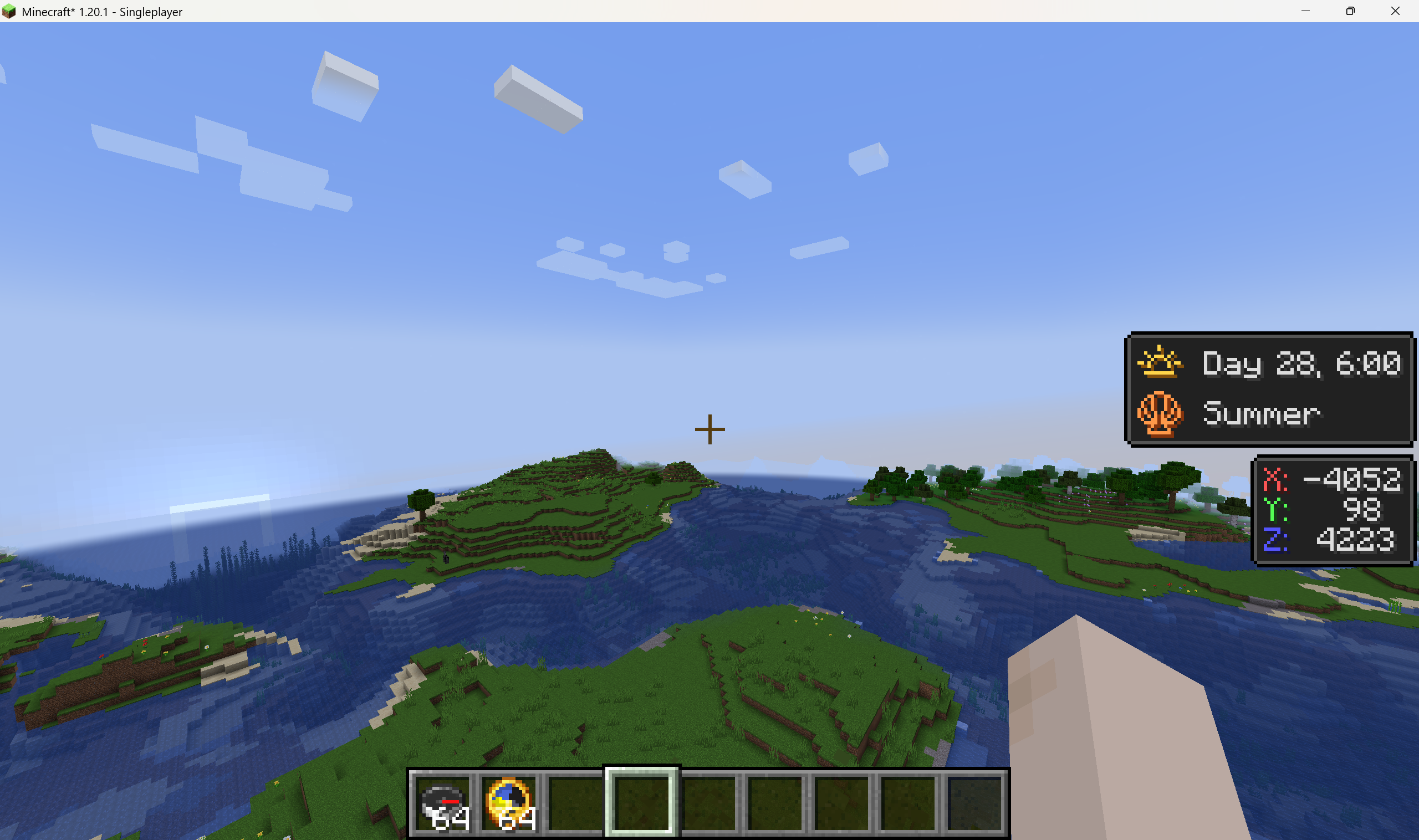 Avoir une boussole dans son inventaire suffit pour faire apparaître un petit affichage indiquant les coordonnées X et Z du joueur. Le mod ne demande pas que l’objet soit tenu en main : il peut être rangé n’importe où, même dans une besace, sans désactiver la fonctionnalité. Cette manière de faire reflète plutôt bien le rôle réel d’une boussole, censée accompagner le joueur dans ses déplacements.