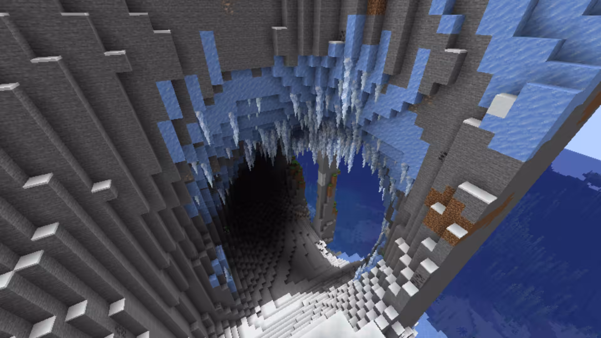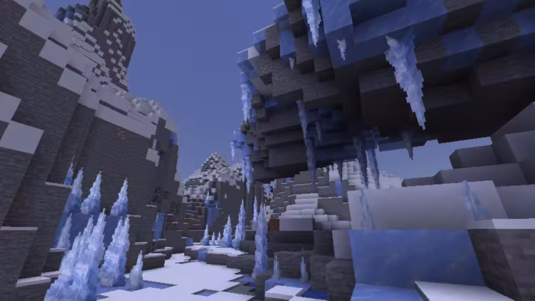 Ces cavernes se forment dans les biomes de Pics enneigés et de Pics de glace et sont incrustées de grands stalactites.