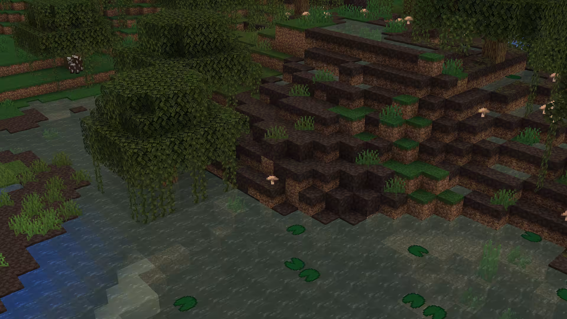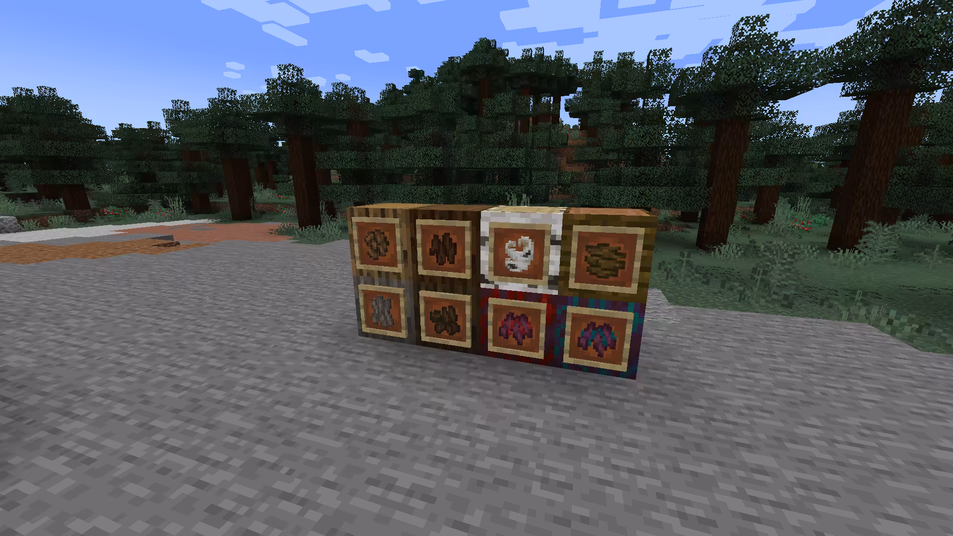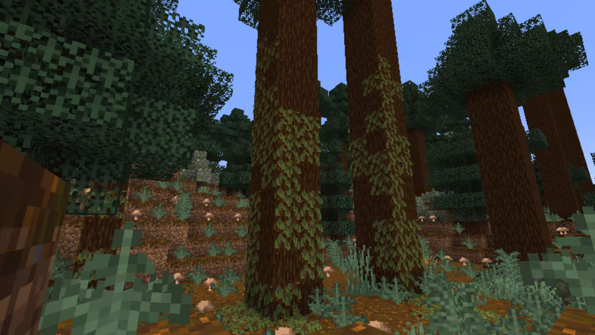 Immersive Weathering ajoute différents types de blocs de sol de surface dans divers biomes lors de la génération du monde, de manière similaire à la façon dont le Podzol se génère dans les biomes de Taïga ancienne et de Jungle de bambous dans Minecraft Vanilla :