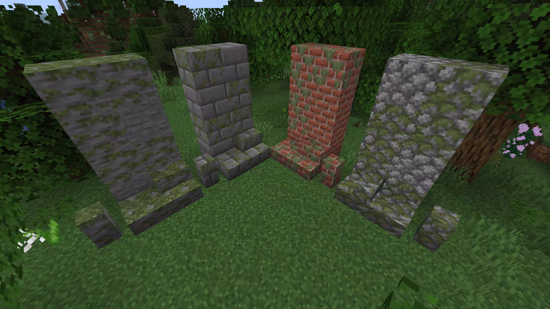 Les blocs, dalles et murs en pierre et en brique ont maintenant des variantes moussues, qui peuvent se propager aux blocs voisins.