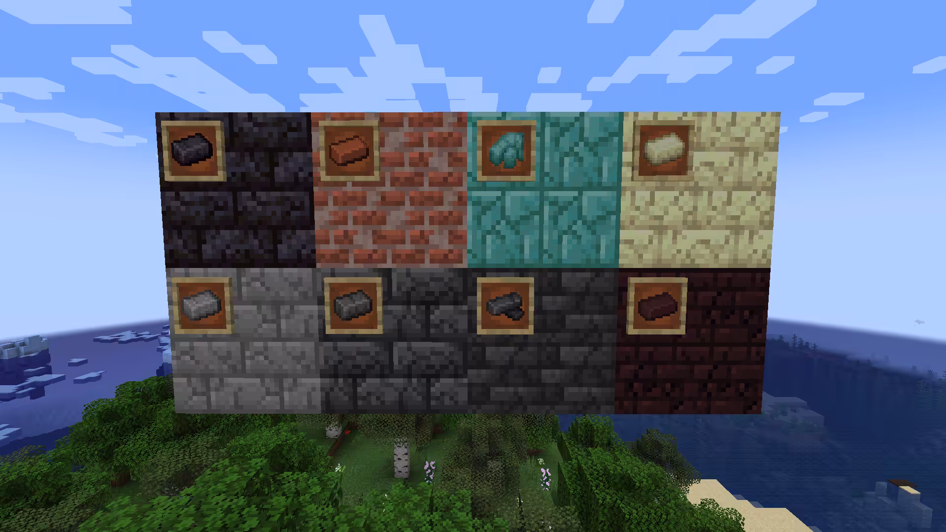 Immersive Weathering ajoute des objets en briques de Pierre, Prismarine, Pierre de l’End, Blackstone, et Briques de Deepslate ainsi que des objets en Tuiles de Deepslate qui peuvent être utilisés pour réparer des blocs craquelés. Ils peuvent également être utilisés pour fabriquer les blocs dont ils sont issus. En utilisant une pioche, vous pouvez manuellement craqueler n’importe quel bloc de brique, qui lâchera alors un objet en brique du type correspondant.