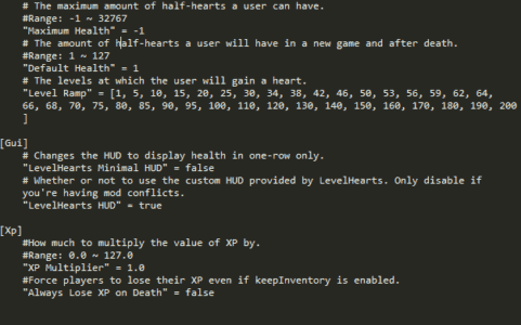 LevelHearts a pour objectif de modifier le système de vie par défaut de Minecraft. Dorénavant, pour obtenir de la vie, vous devrez monter votre expérience et débloquer de nouveaux cœurs. De plus, ce mod est totalement configurable afin d’ajuster la difficulté et rendre votre expérience de jeu unique.