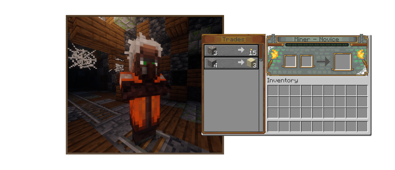 Miner Villager est un mod qui introduit un nouveau type de villageois pensé pour accompagner le joueur lors de ses explorations souterraines. Sans ajouter de village complet sous terre, il propose un PNJ unique, intégré aux mineshafts, avec des échanges spécialisés et une progression centrée sur de nouveaux outils de minage.