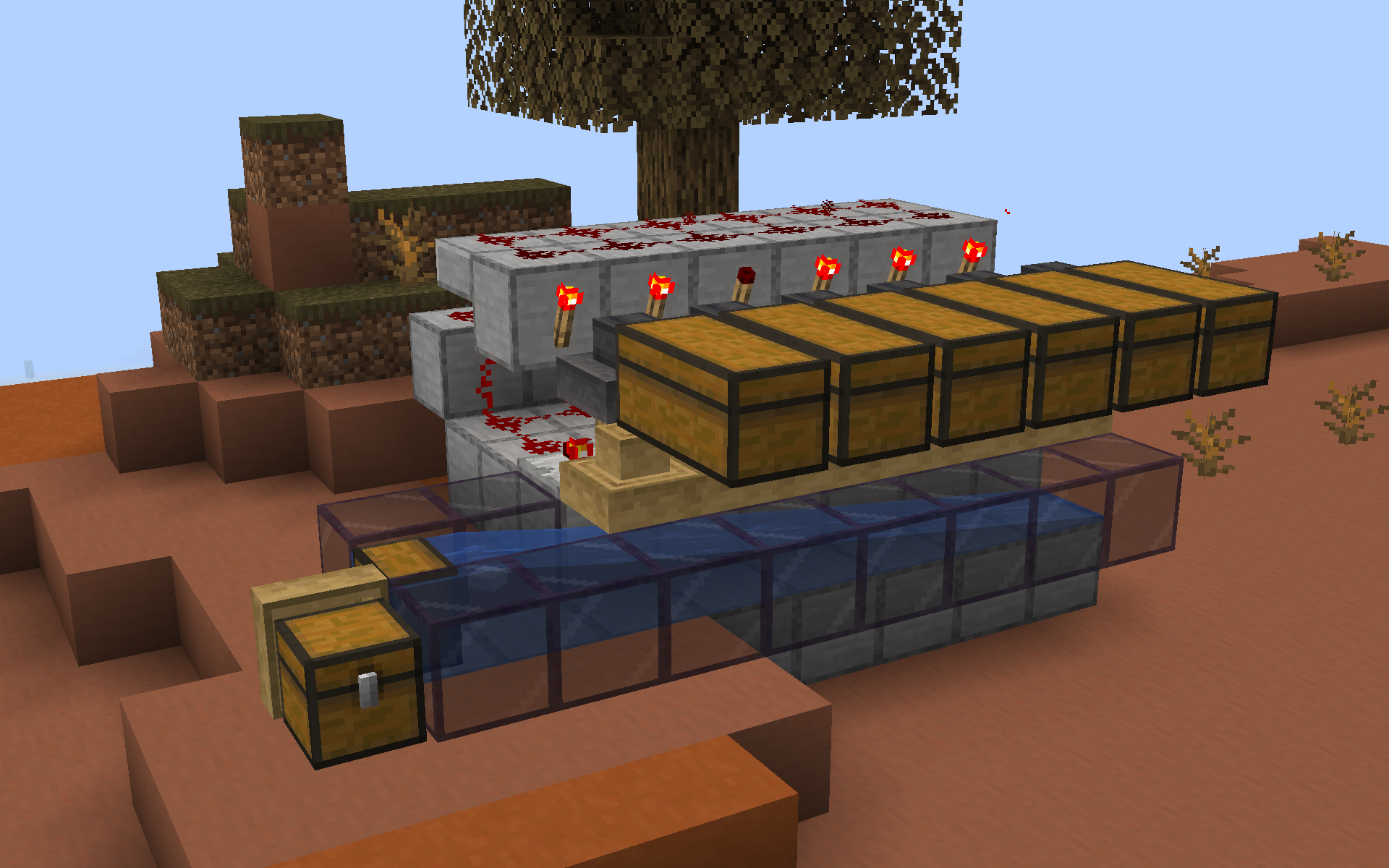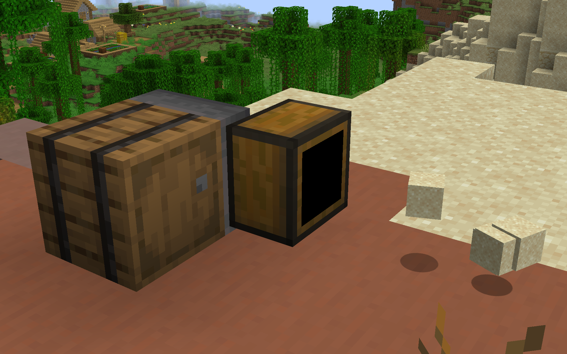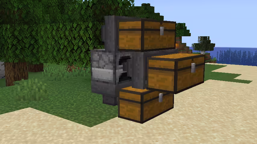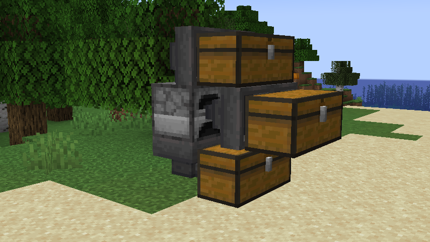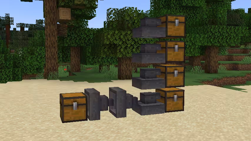 Une alternative basique aux entonnoirs vanilla. Ils fonctionnent à la moitié de la vitesse d’un entonnoir et ne contiennent qu’un seul emplacement d’inventaire. Mais ils sont aussi très bon marché à fabriquer, ne nécessitant que 5 planches et un coffre. Ils ne répondent pas non plus au redstone, ce qui peut être un avantage ou un inconvénient selon vos besoins.