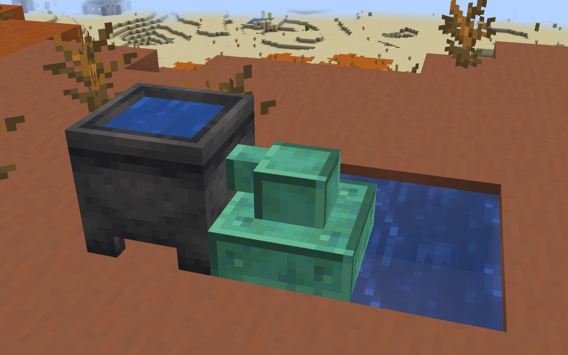 Une autre variante d’entonnoir qui transporte des fluides au lieu d’objets. Ils aspireront les fluides du monde dès que possible. Ils peuvent être fabriqués en utilisant la même recette qu’un entonnoir, mais en remplaçant le fer par du cuivre et le coffre par un seau. Comme ils sont faits de cuivre, ils peuvent s’oxyder et être cirés comme tout autre bloc de cuivre.