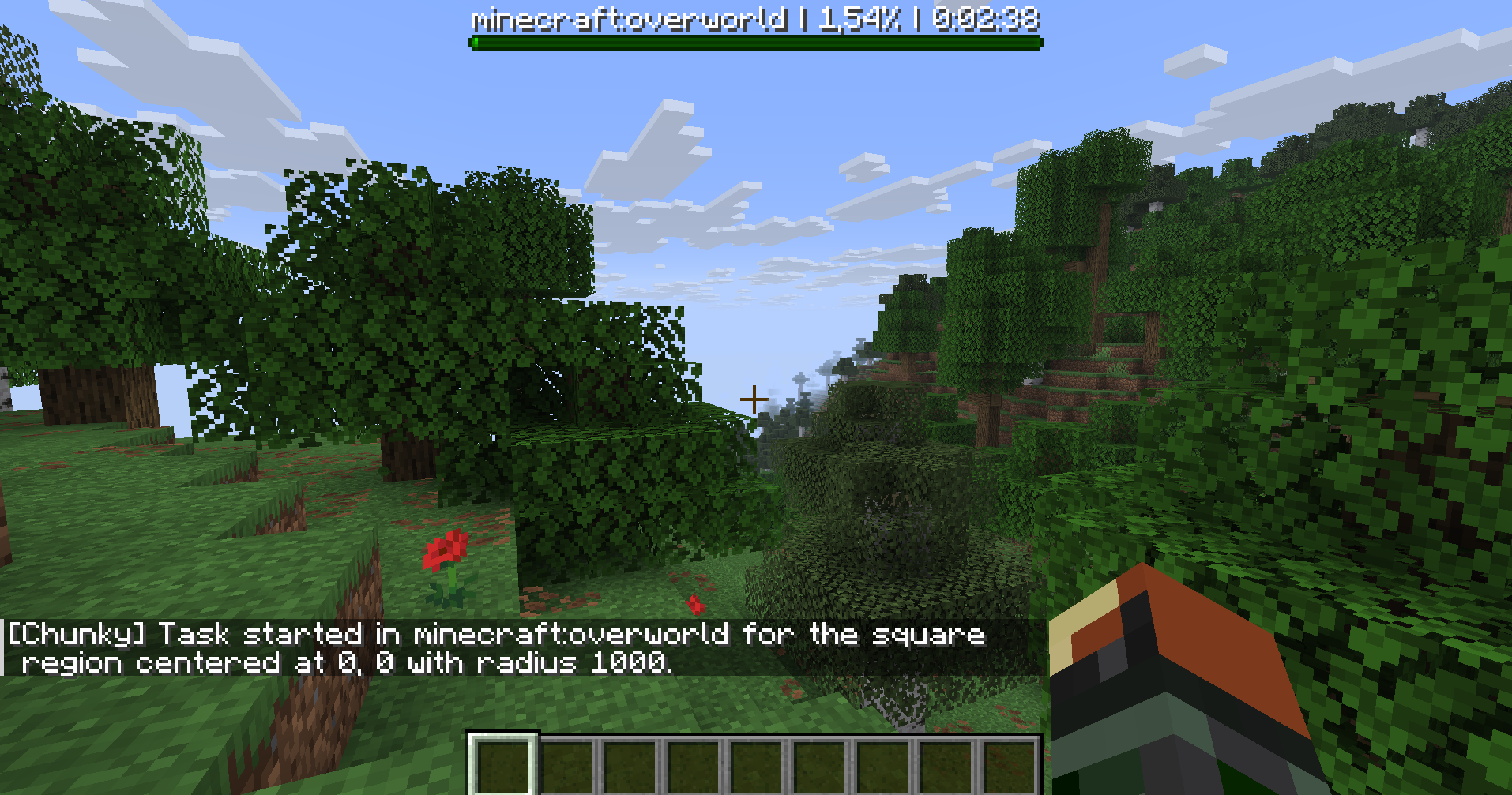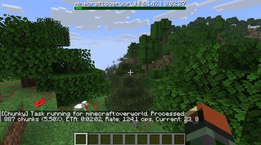 Une fois la génération lancée, Chunky vous affiche régulièrement des messages pour indiquer l’état de la tâche. Si vous êtes en solo, vous les verrez dans le tchat. Sur un serveur, ça s’affiche dans la console.