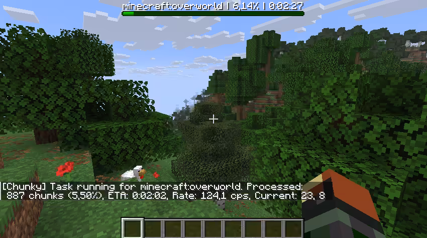Une fois la génération lancée, Chunky vous affiche régulièrement des messages pour indiquer l’état de la tâche. Si vous êtes en solo, vous les verrez dans le tchat. Sur un serveur, ça s’affiche dans la console.
