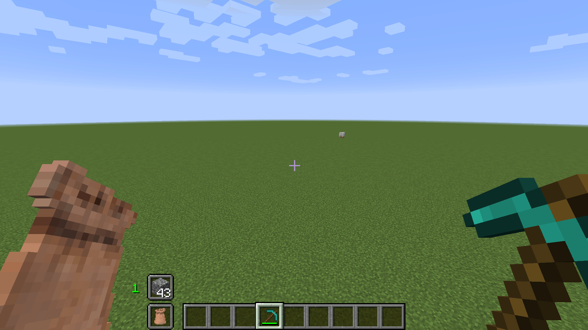 - Faites un clic droit lorsqu’il est dans votre main main gauche et visez sur un bloc à portée pour placer l’élément sélectionné (s’il peut être placé dans le monde).