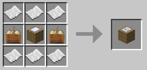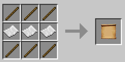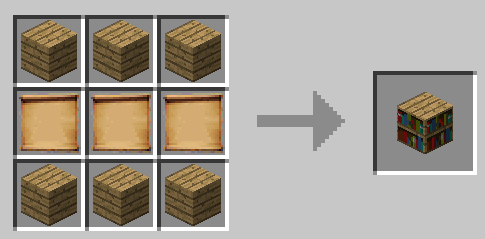Les parchemins sont une alternative aux livres. Ils peuvent être enchantés et utilisés sur une table d’enchantement et peuvent aussi être utilisés sur l’enclume. Vous pouvez aussi faire des étagères avec les parchemins. Le craft peut inclure n’importe quel type de bois.