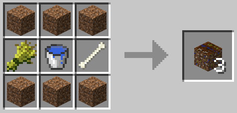 Lorsqu’il est placé, ce bloc peut se transformer en dalle d’herbe s’il y a d’autres blocs d’herbe à proximité.