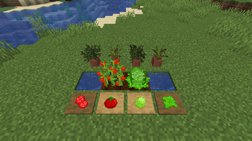 pomme de terre. Les graines ne peuvent cependant être obtenues qu’avec un autre élément du mod, l’arbuste. Pour les utiliser en garniture, il est nécessaire de les couper avec la planche à découper.