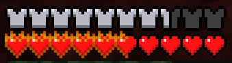 Votre température corporelle est affichée sous forme de cœur enflammé superposé à votre barre de vie. Lorsque vous atteignez la température maximale, les cœurs sont entièrement embrasés, semblables aux cœurs gelés (ceci ne fonctionne pas actuellement avec certains mods de reconfiguration de la barre de vie).
