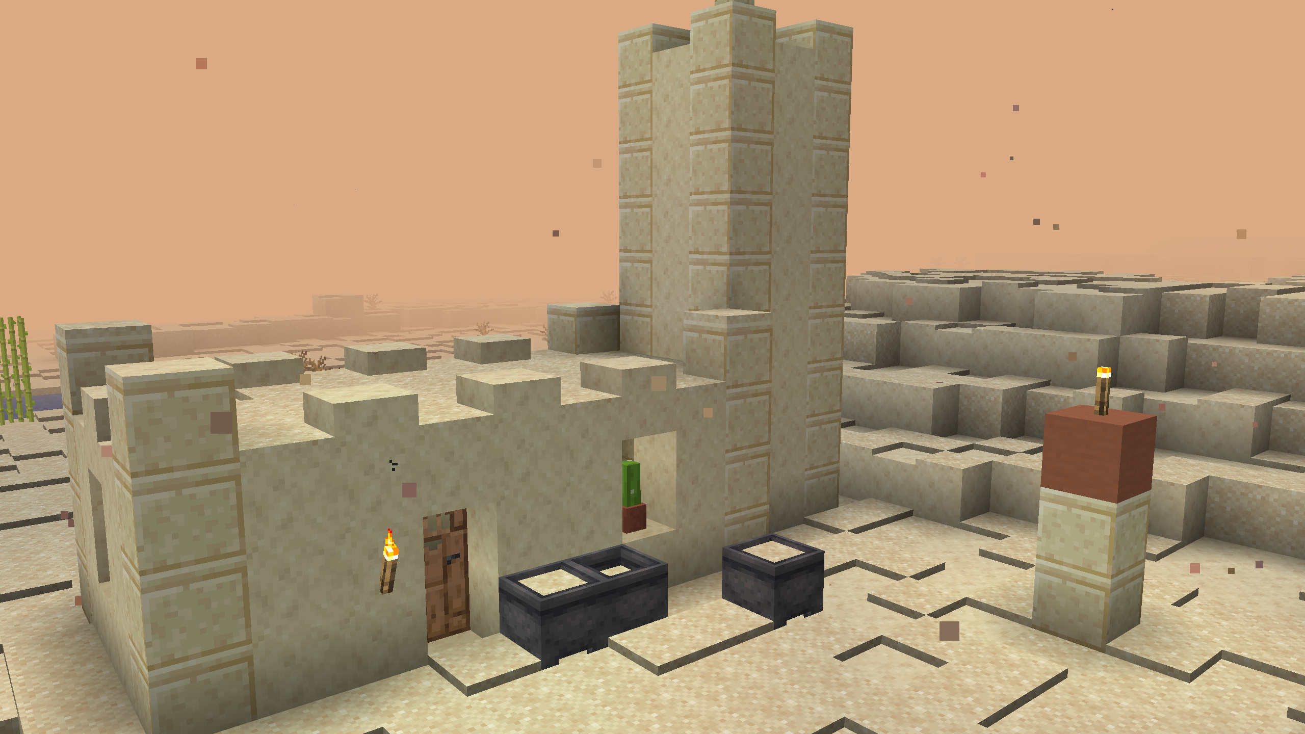Dans les déserts et les badlands, les tempêtes de sable ajoutent une nouvelle couche de danger. Elles réduisent considérablement la visibilité en enveloppant tout d’un brouillard de sable, mais elles ont aussi un effet bénéfique : elles bloquent la chaleur du soleil. Durant ces tempêtes, du sable s’accumule au sol et les chaudrons exposés se remplissent de sable, créant une source renouvelable de ce précieux matériau.