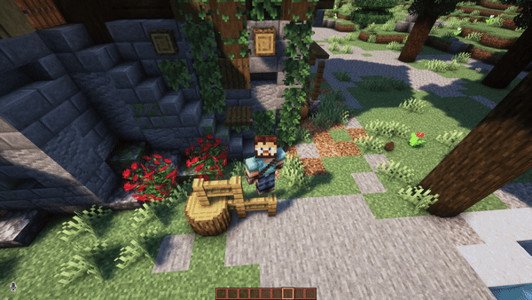 Avec Sitting+, il suffit d’appuyer sur une touche (par défaut X) pour que votre personnage adopte une position assise. Le système est contextuel, ce qui signifie que la posture changera en fonction du type de bloc sur lequel vous vous asseyez, de votre environnement ou même de l’objet que vous tenez.