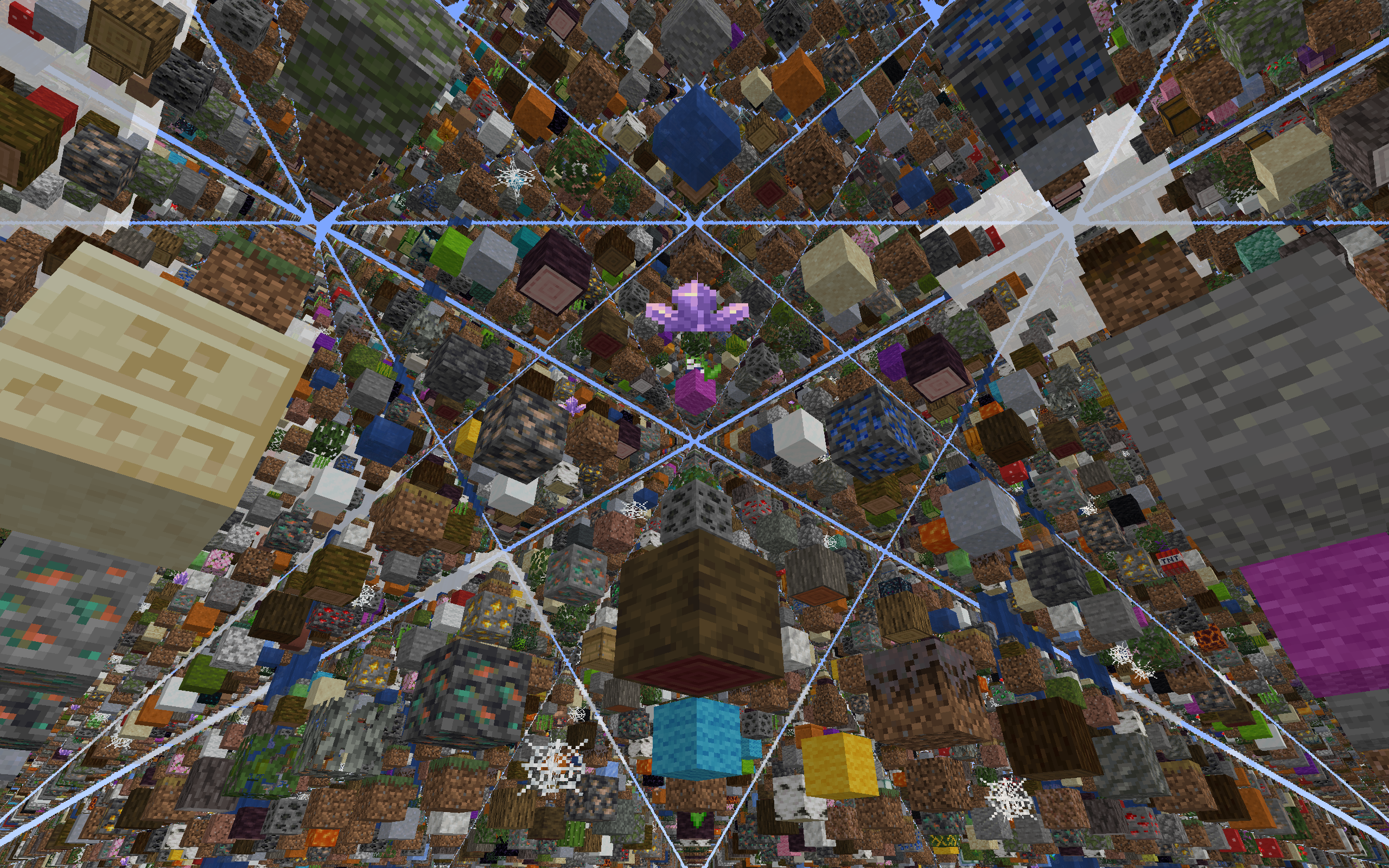 À l’origine, le SkyGrid est une carte de survie atypique créée par SethBling, l’un des créateurs de contenus Minecraft les plus influents. Contrairement aux mondes classiques, celui-ci est composé d’une grille tridimensionnelle suspendue dans les airs, avec un bloc tous les 4 blocs en hauteur, en largeur et en profondeur. Chaque bloc est choisi aléatoirement parmi ceux disponibles dans le jeu.
