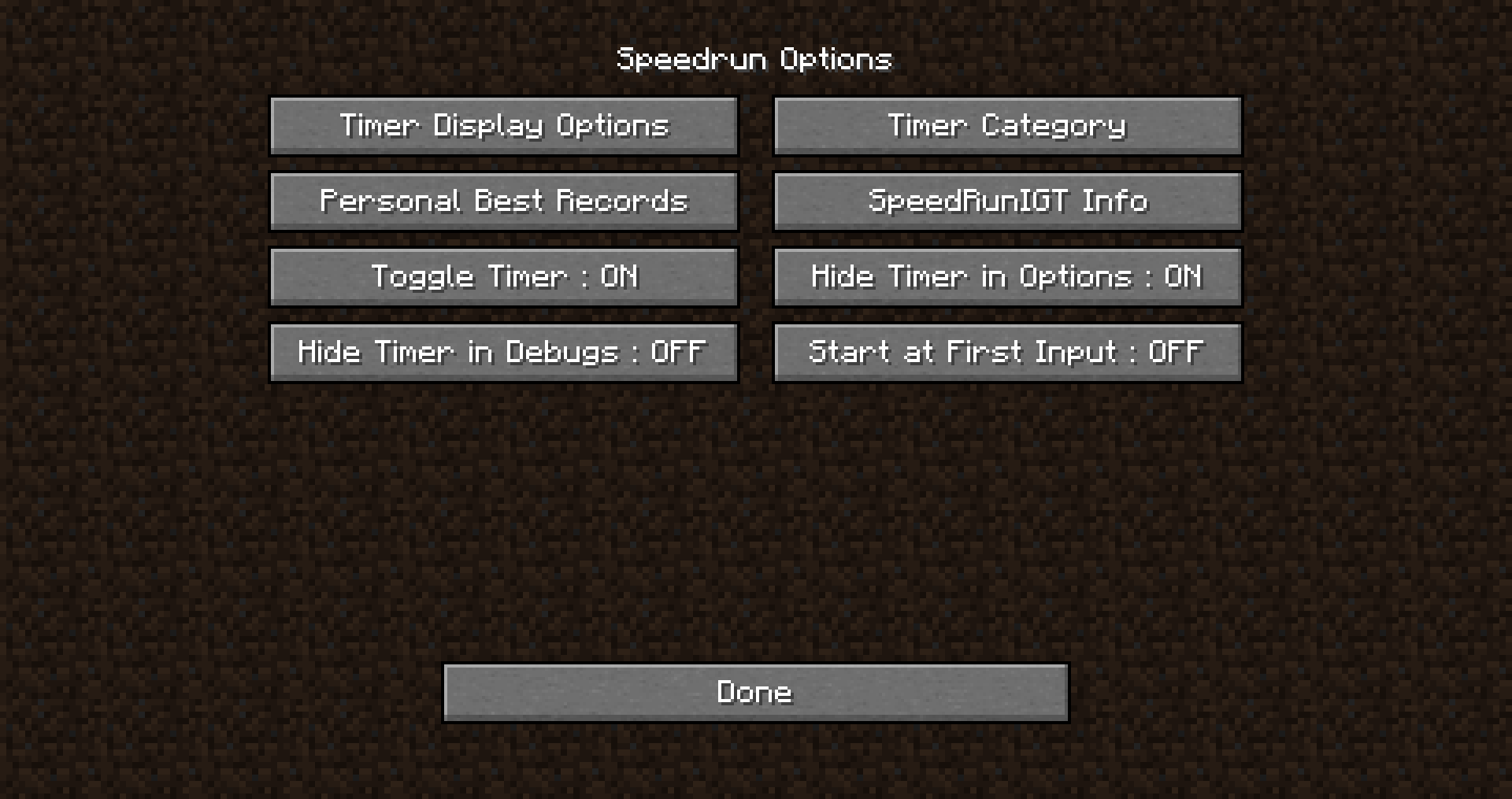 Conçu pour accompagner les joueurs dans leurs tentatives de speedrun, SpeedRunIGT regroupe tout ce qu’on peut attendre d’un outil de chronométrage intégré à Minecraft. Léger, flexible et entièrement personnalisable, il se démarque par la richesse de ses options.