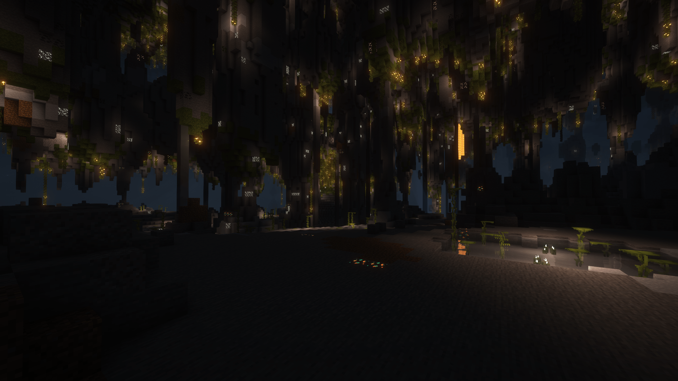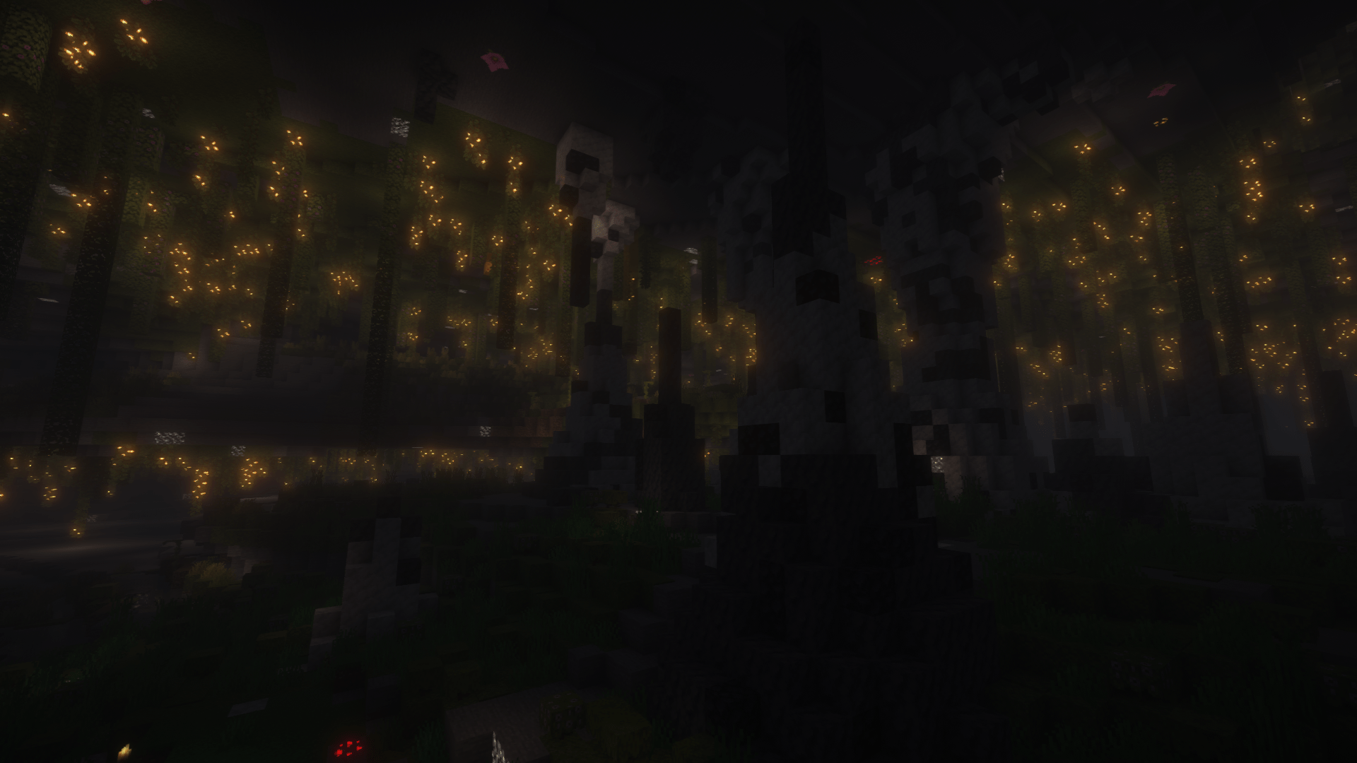 Les Jardins Luxuriants sont une version plus éclatée des biomes Grottes Luxuriantes. Ces biomes comportent de nombreuses colonnes de pierre qui s’élèvent au-dessus, tandis que le sol est recouvert d’une abondante mousse, créant un environnement verdoyant et accueillant pour les joueurs en quête de ressources rares.