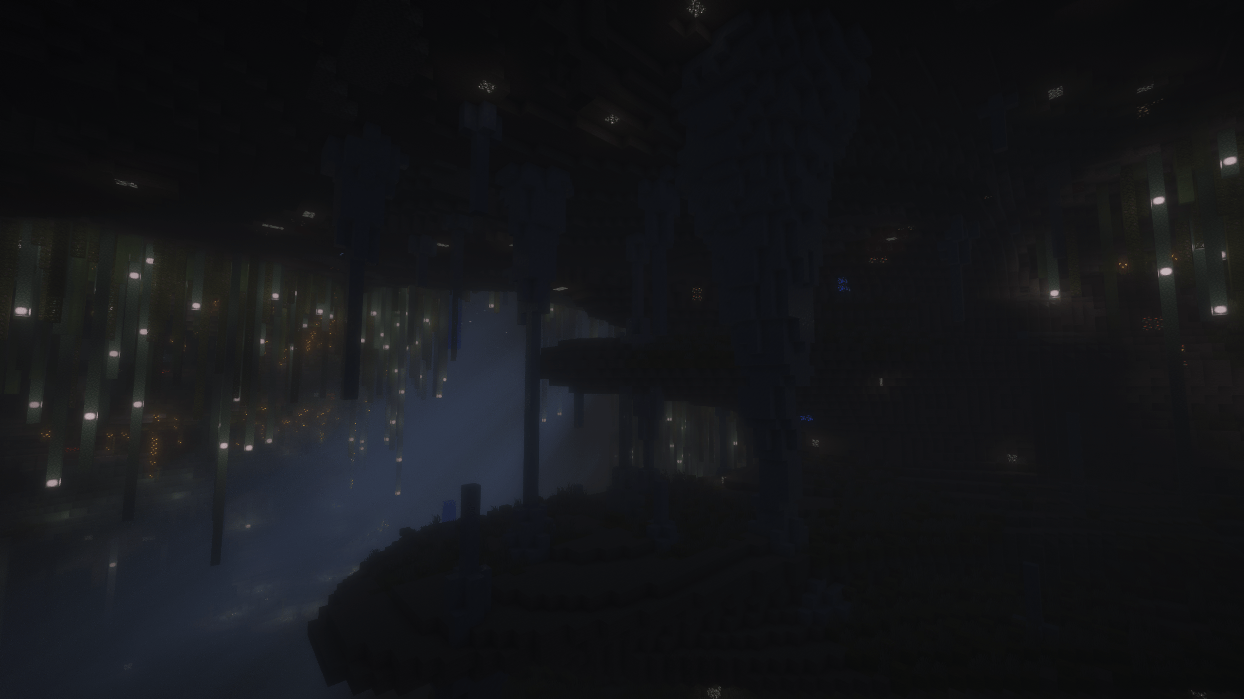 Les Étangs de Prismarine sont un biome caractérisé par de nombreux étangs parsemés de coraux, de lanternes marines, et de nombreuses colonnes de prismarine. Ce paysage aquatique unique apporte une touche lumineuse et colorée au sein de la dimension, offrant un contraste marquant avec les autres environnements souvent sombres et hostiles.