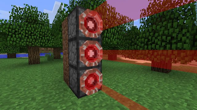 Avec la perceuse, faites un clic droit sur le bloc que vous avez choisi et une interface. Vous pouvez mettre un bloc de verre dans la fente ou une lentille. Vous devez avoir un ruby dans votre inventaire et il sera automatiquement consommé . Chaque slot correspond à un côté d’un bloc.