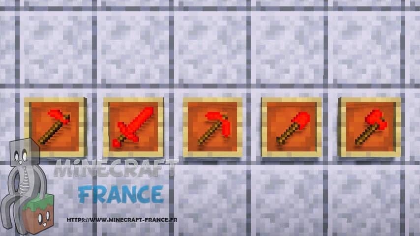 • Les outils sont 50% plus rapides que ceux en fer et possèdent la même extraction que ceux en diamant, de sorte qu’une pioche peut  obtenir de l’obsidienne.