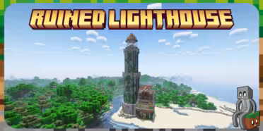 Le mod Ruined Lighthouse ajoute un phare effondré sur les plages de Minecraft. Montez jusqu’au sommet grâce à un parkour pour récupérer le butin caché !