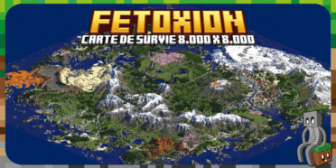 Découvrez Fetoxion, une carte de survie personnalisée de 64 km² pour Minecraft 1.21.5. Découvrez un monde divisé en continents, avec volcans, archipels, grottes, villages et structures à explorer.