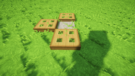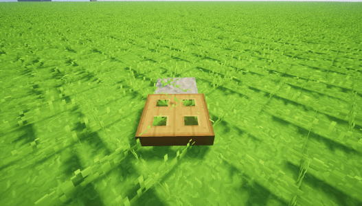 Autre chose intéressant à savoir : si vous souhaitez que votre piège fonctionne alors que vous êtes loin, faites-le à proximité d’un petit champ avec quelques plantations pour que les mobs continuent de spawn pendant votre absence. Utilisez la poudre d’os pour éviter de mettre de l’eau à proximité de votre champ :
