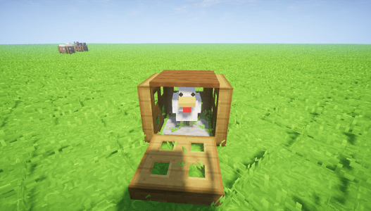 Votre piège est enfin prêt. Celui-ci va vous permettre de capturer des petits mobs tel que le lapin, le poulet ou le cochon. Si vous souhaitez capturer un mob, un peu plus gros, il suffit juste de retirer le tapis posé au dessus de votre piège. L’avantage de ce piège est qu’il est non seulement très peu coûteux, mais en plus qu’il permet de capturer les animaux vivants. Cette nuance est particulièrement importante si vous souhaitez commencer un élevage.