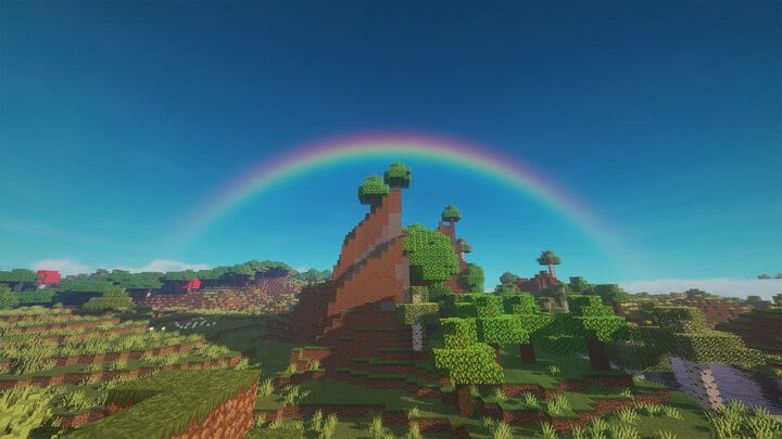 Comme d’autres packs du même type, Above the Clouds modifie très fortement le ciel et sa consistance. Oubliez le bleu uniforme du jeu de base, le pack donne à voir un bleu laiteux, légèrement éclairci à l’horizon. L’ensemble est particulièrement réaliste. Et, parfois, vous pourrez même voir des arcs-en-ciel !