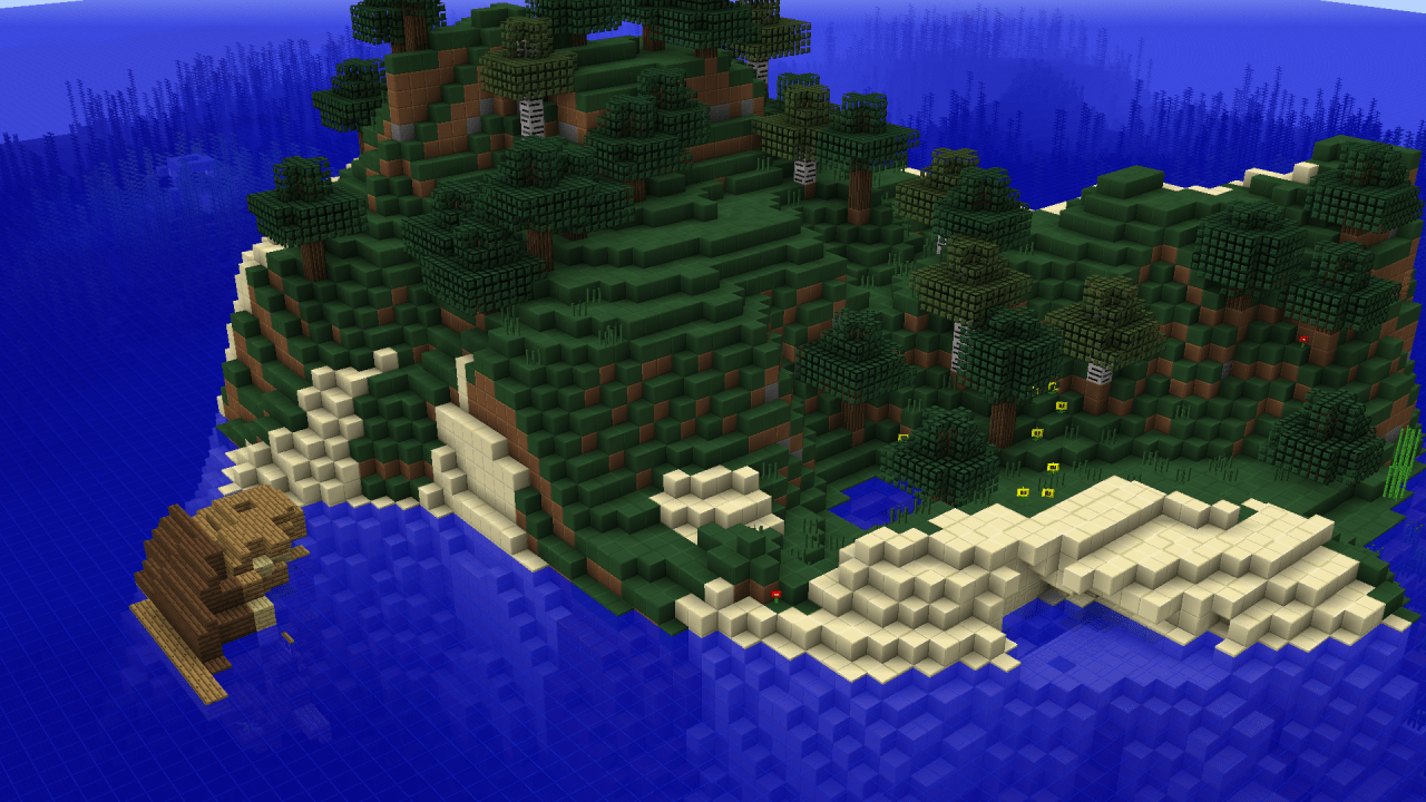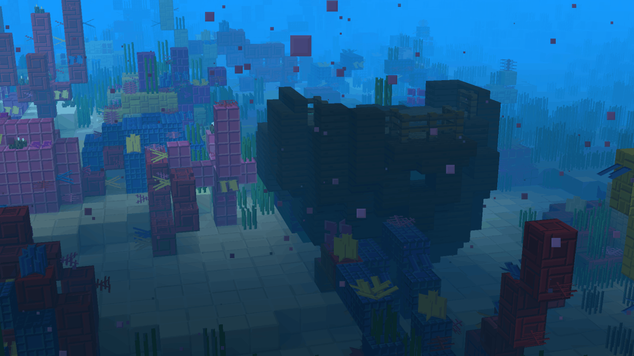 Le fin liserai qui entoure les blocs naturels étant la seule différence majeure avec les textures du jeu, de loin, on ne peut que constater une similitude. En termes de couleurs, cela dit, quelques nuances viennent les différencier. Celles-ci sont globalement moins contrastées, avec des textures plus lisses. Chaque bloc a sa propre couleur, et on observe peu de variations au sein d’une face.