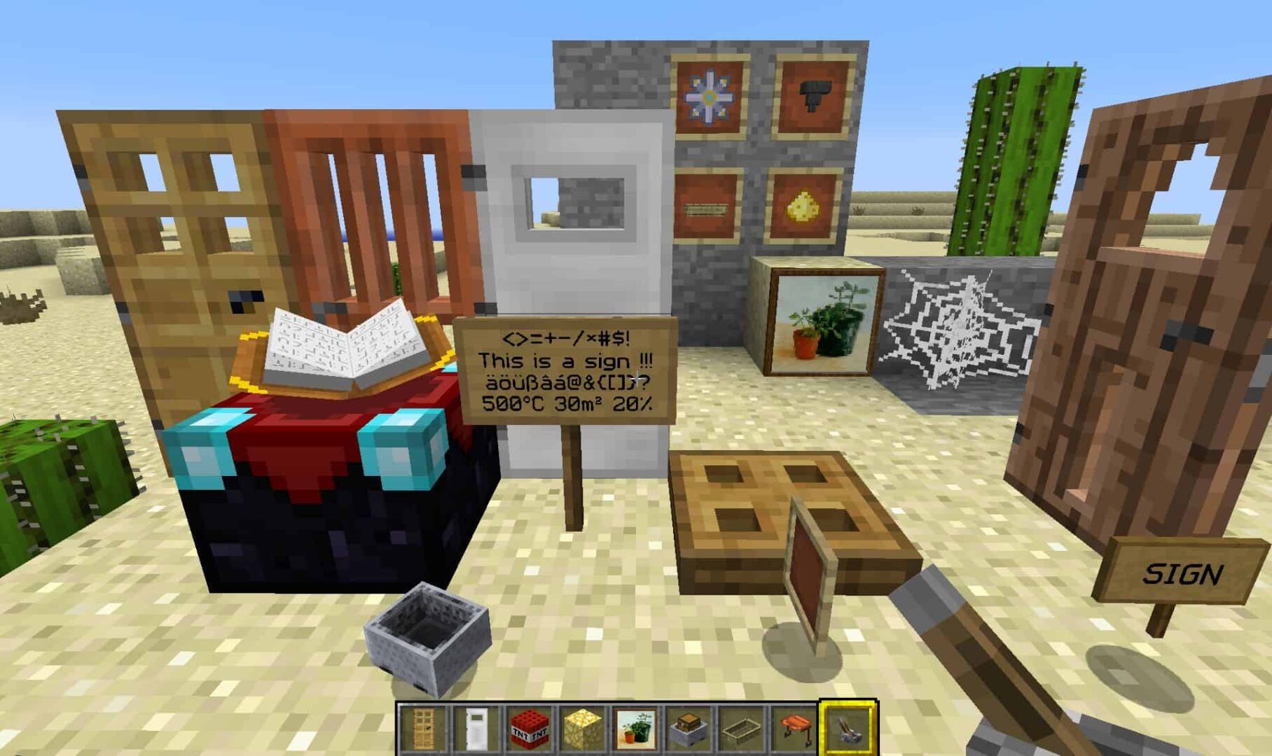 Tous les blocs de construction, du bois à la pierre en passant par la brique et les barres de fer, sont eux aussi retouchés de diverses manières, le plus souvent pour les rendre plus harmonieux ou pratiques. Les portes acquièrent ainsi une véritable texture 3D, tout comme les items jetés au sol.