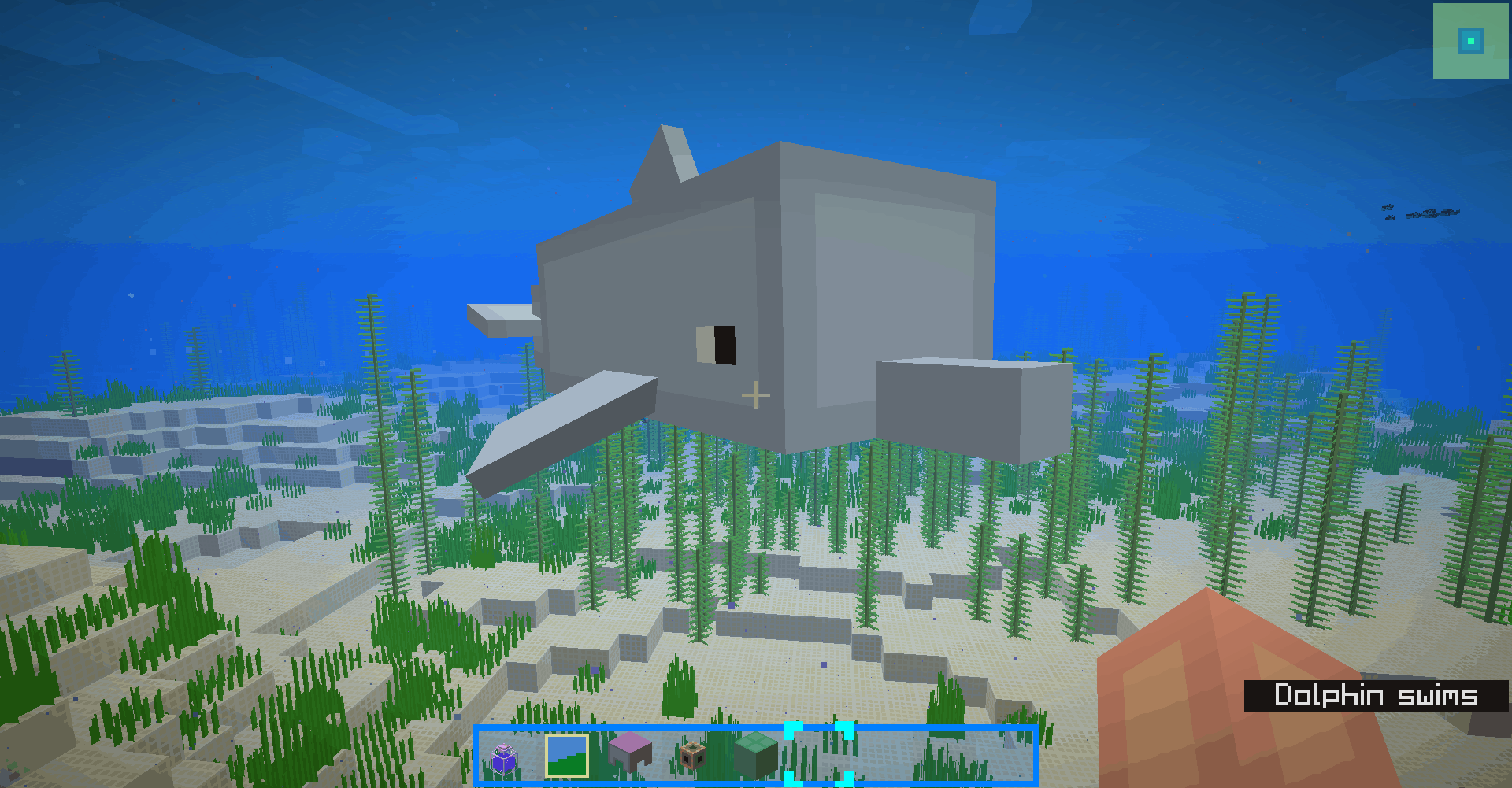 Les blocs eux-mêmes bénéficient de modifications qui vont au-delà de la simple refonte de couleurs. On l’a vu, leurs arêtes sont mises en valeur par un liserai de couleur, généralement plus foncé que la couleur dominante sur le bloc. De quoi complimenter la dimension cubique de Minecraft. En outre, du fait de l’uniformité des couleurs, on remarque que les faces des blocs sont beaucoup plus lissées et montre moins de relief.