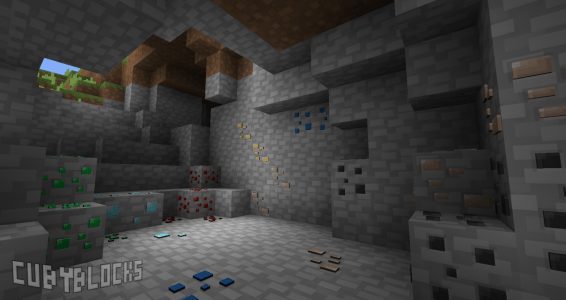 CubyBlocks est un resource pack réalisé par le créateur de LokiCraft qui avec ce nouveau projet, fait ses premiers pas dans le Pixel Art et la 3D. Ce Resource Pack parvient à conserver l’aspect général du jeu, ainsi que son ambiance, tout en apportant certaines modifications. Les blocs faits de pierre, notamment, laissent apparaître un relief plus réaliste, sans pour autant dénaturer le jeu. Il rend également le jeu encore plus cubique qu’il ne l’est sans Resource Pack, puisque les formes rectangulaires sont légion, par exemple pour les minerais et les champignons, mais aussi, plus discrètement, pour le bois. Ce Resource Pack est donc parfait si vous souhaitez modifier légèrement le style du jeu, en conservant les grandes lignes du jeu. Notez enfin que la résolution de ce Resource Pack, tout en assurant une certaine qualité graphique, lui permet de fonctionner fluidement sur les configurations les plus modestes.