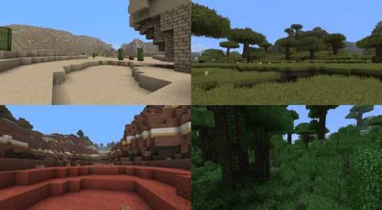 Malgré des textures en 64x, Emfires marque des similarités avec le jeu de base, notamment en ce qui concerne ses couleurs. Globalement, chaque biome, chaque construction conserve son esprit, avec des contrastes qui ne changent pas et une volonté affichée de ne pas bouleverser le code couleur du jeu. Cela dit, à un niveau plus global, on observe un léger obscurcissement des textures, particulièrement visible sur le bois.