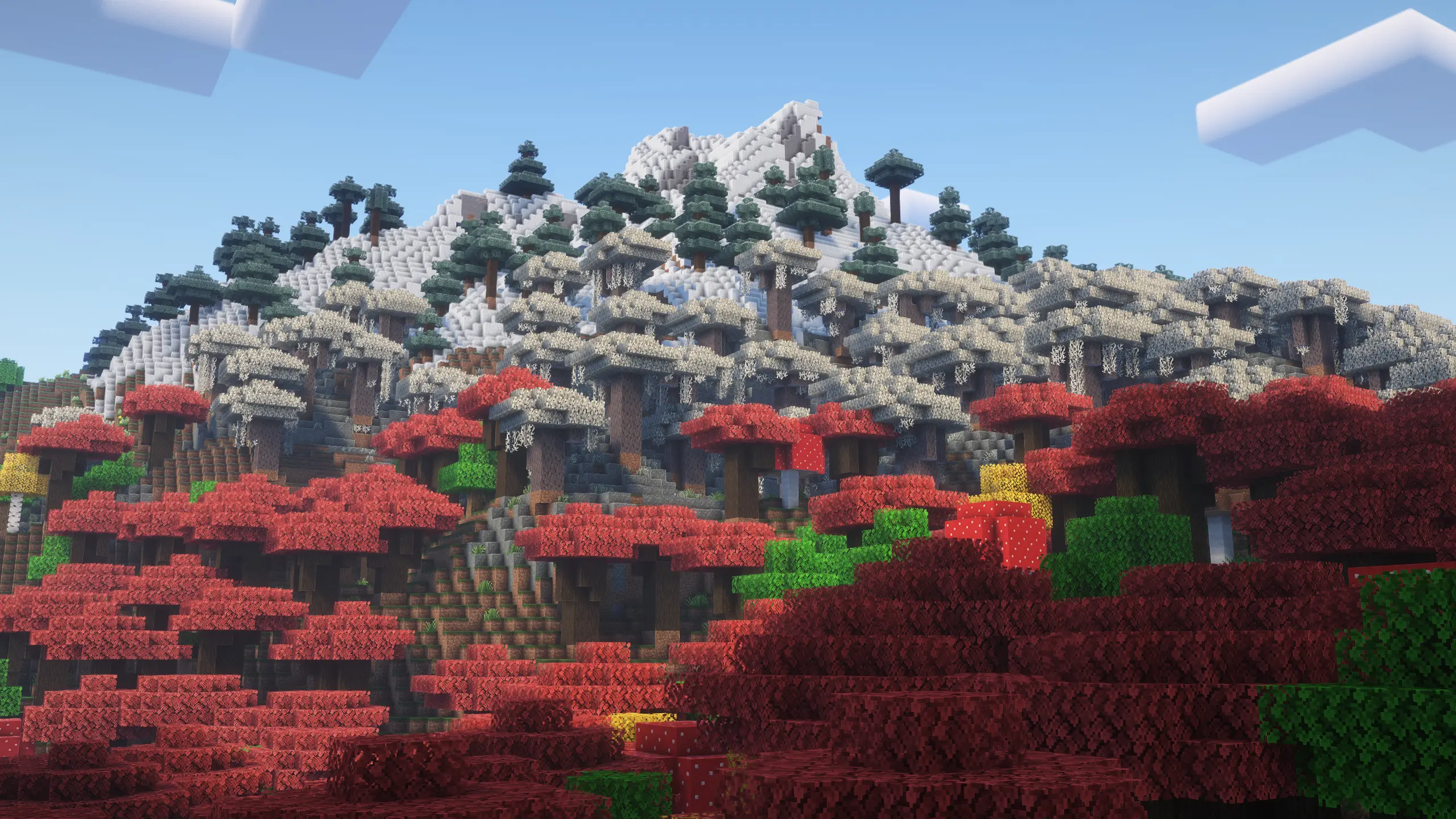 - des feuillages plus variés, avec des nuances plus marquées selon les biomes,