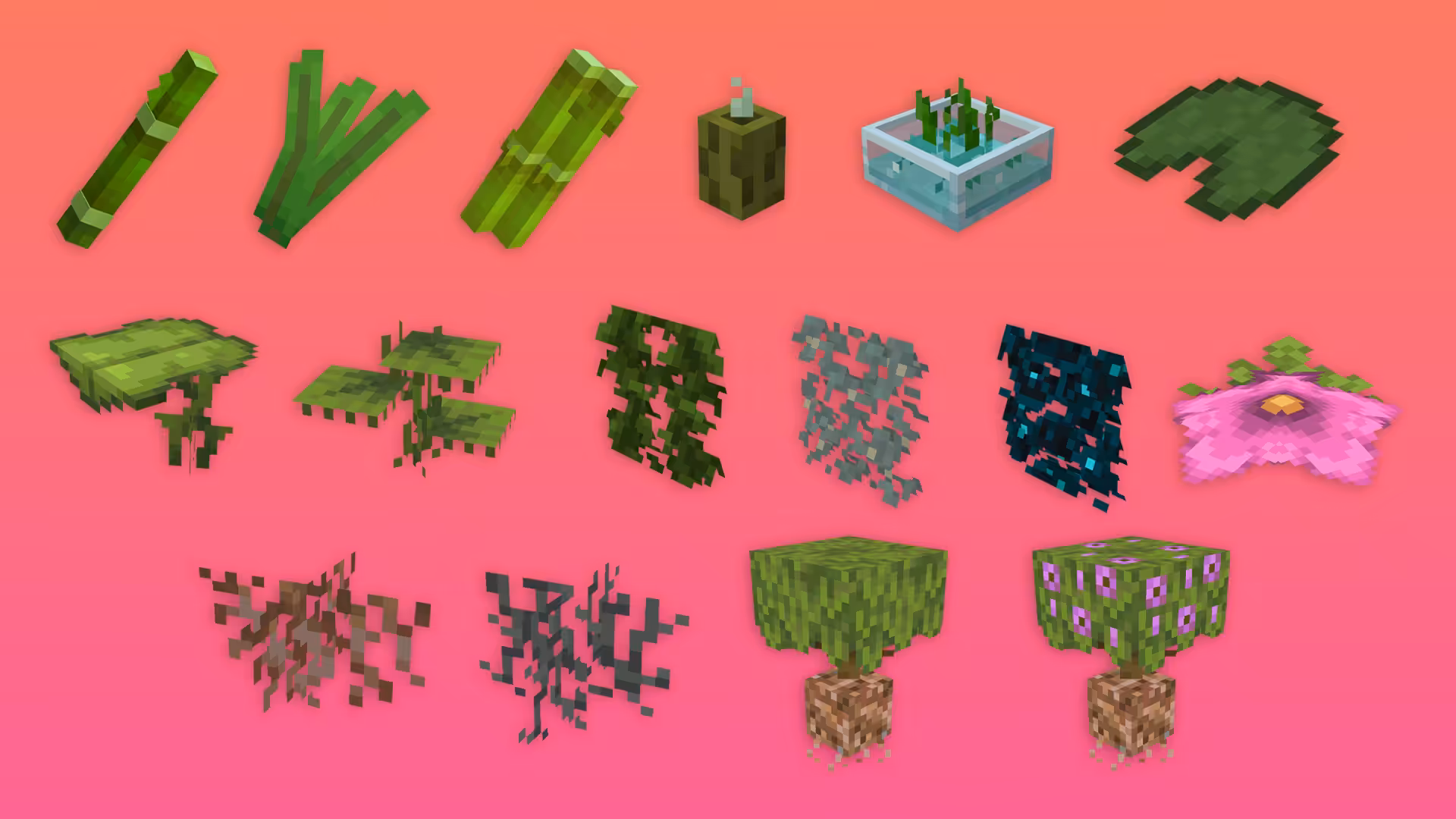 Fresh Flowers and Plants est un pack de textures pour Minecraft qui se concentre sur un point précis : améliorer le rendu des fleurs, plantes, coraux et jeunes pousses grâce à des modèles 3D, tout en restant fidèle à l’esthétique d’origine de Minecraft.