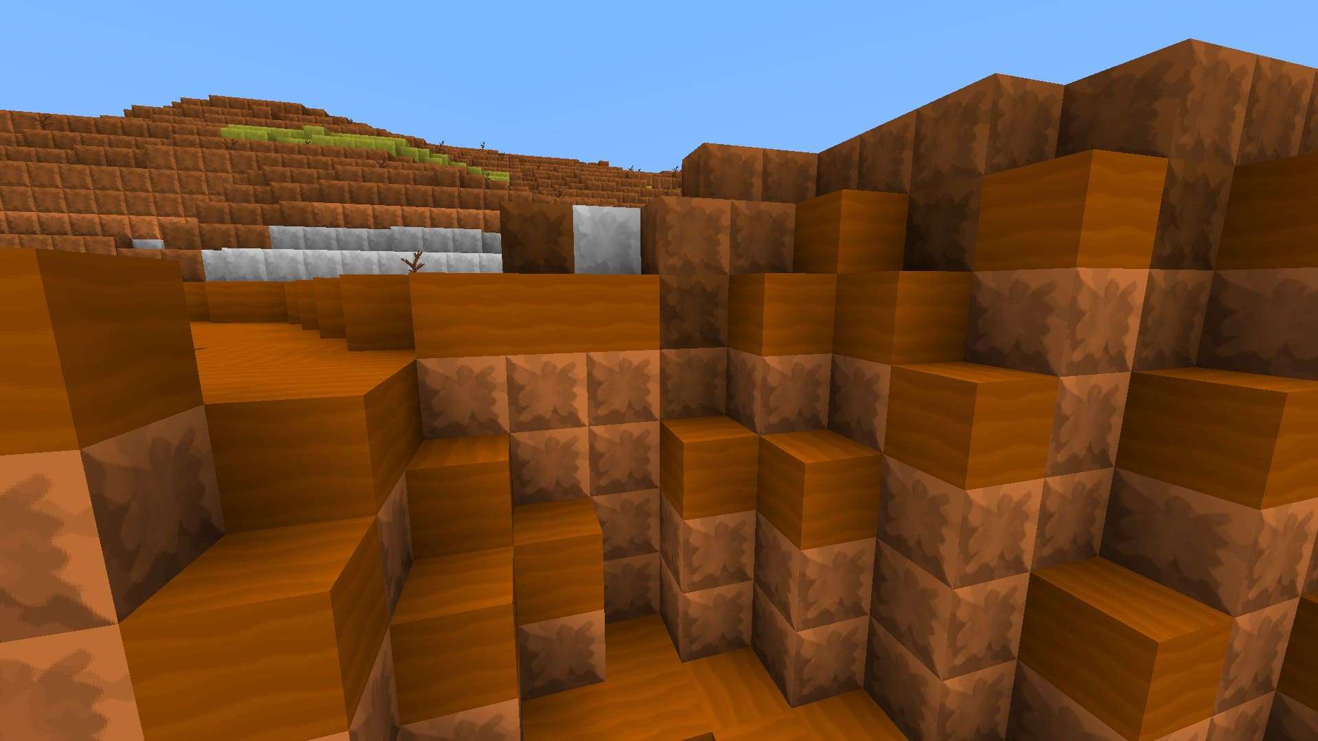 Même les villageois semblent touchés par un mal inconnu. Leur peau est maintenant de pierre et certains n’ont même plus qu’un oeil de libre pour vous observer, comme si une sorte de lèpre les avait touchés… la grise-écaille sans doute. Les explorateurs auront aussi remarqué l’étrange boussole qui les guide. Deux repères sont présentés, le rouge vous indiquant la direction de votre point d’apparition. Durant votre voyage, il vous arrivera de marcher sur des minis-bûches, une texture alternative pour les herbes dans certains biomes, de quoi entretenir l’ambiance forestière. L’herbe possède également quelques textures alternatives avec des pierres, parfois des trous dans le gazon.